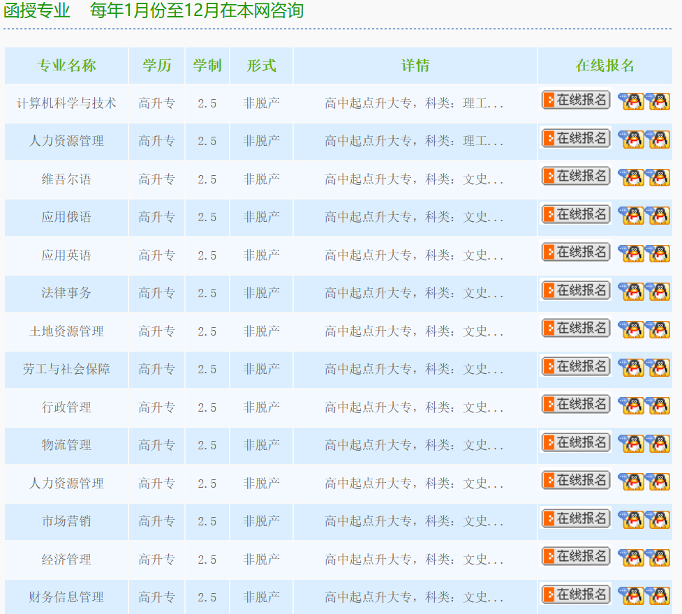 凡具有高中、中专学历及同等学历者均可报考专科各专业,具有专科学历或应届专科毕业生可报考本科各专业。